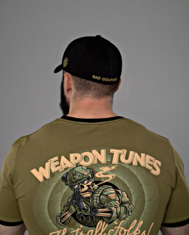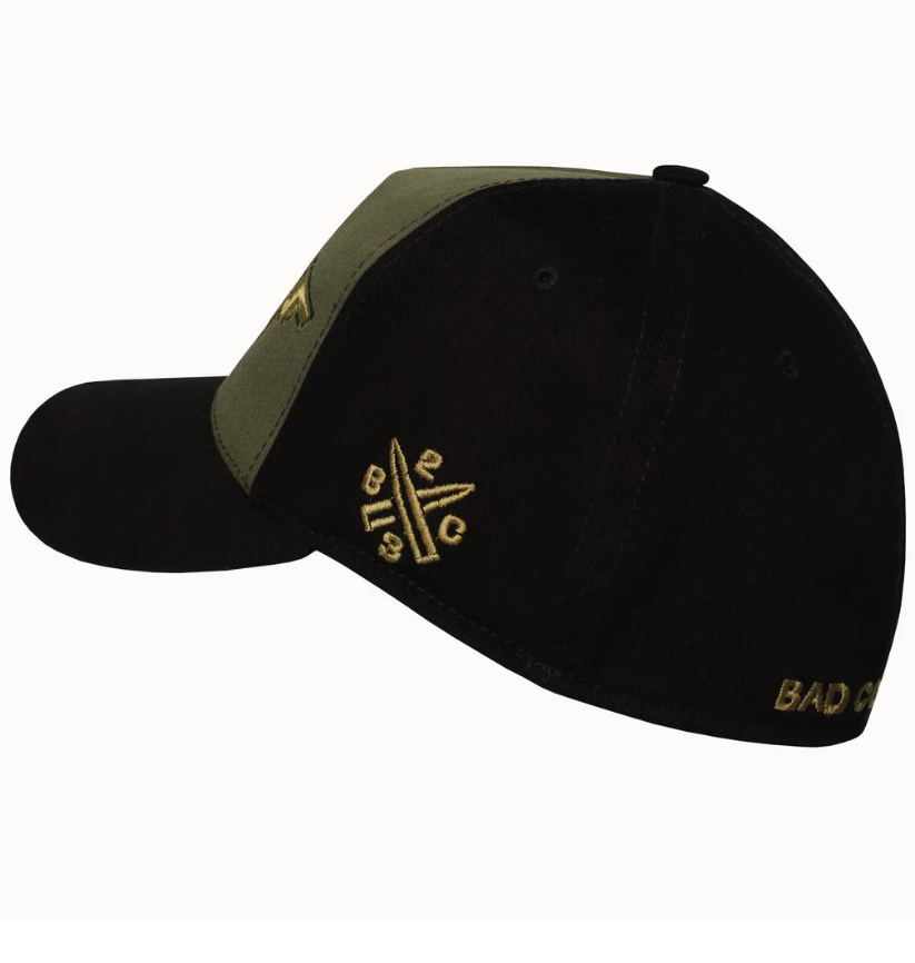 Спереду кепки розміщено автомат у шрифтовому арт-стилі з назвою бренду. На задній частині вишито напис Bad Company. Також, з лівої сторони зображено характерну емблему у вигляді двох перехресних куль та числа 23, в поєднанні з літерами BC — фірмова абревіатура (B — друга буква алфавіту, С — третя).