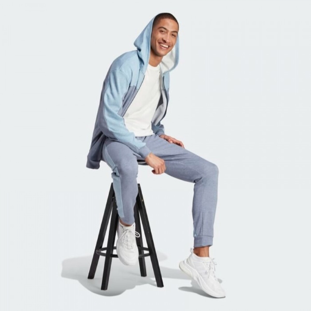 Склад матеріалу: 54% бавовна, 46% перероблений поліестер Колір: сіро-блакитний меланж.