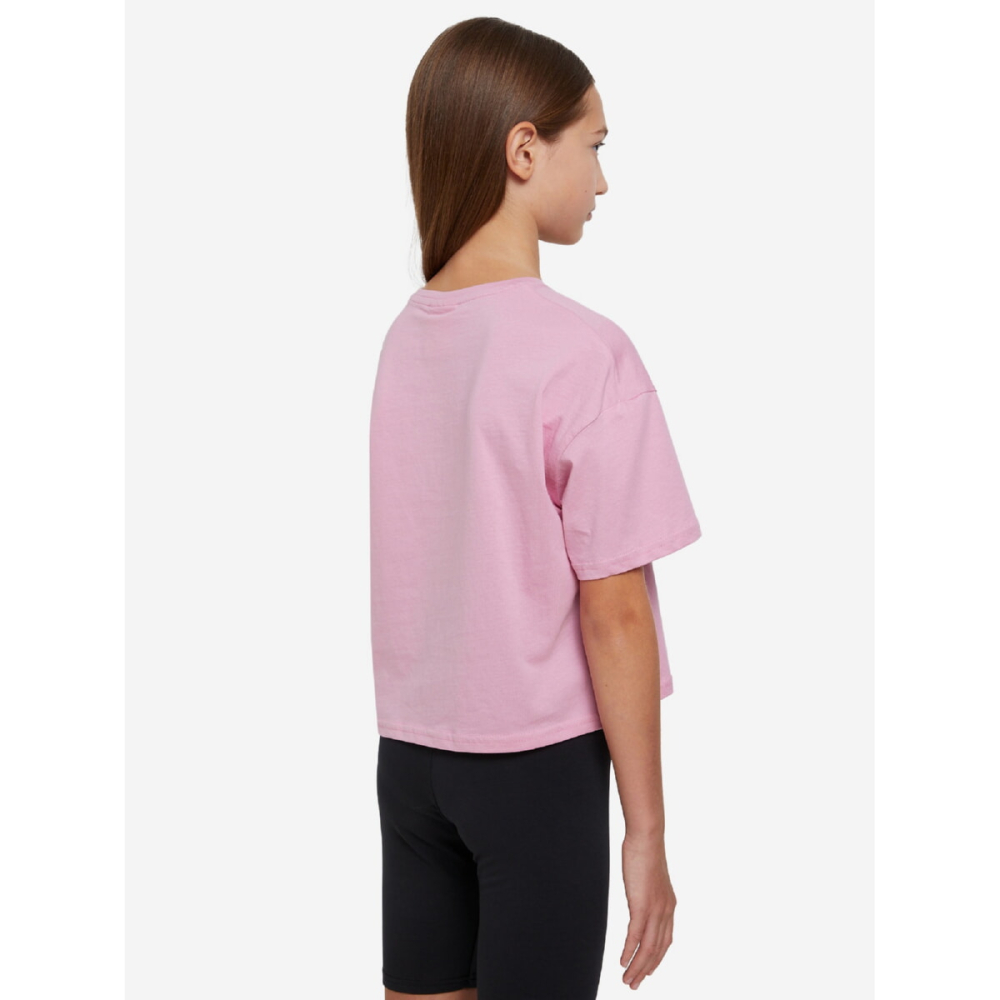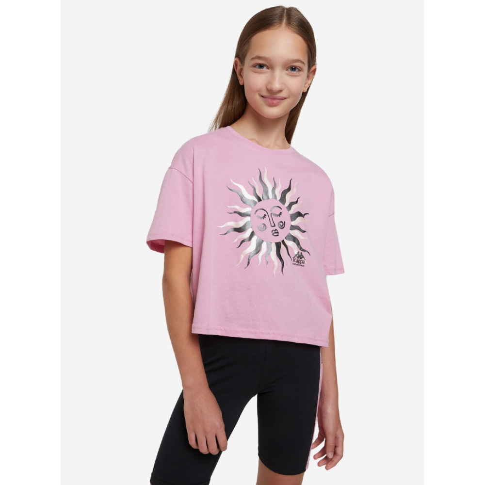 Укорочена футболка Kappa - чудовий вибір для юних прихильниць спортивного стилю. Принт на грудях переливається перламутровим блиском.