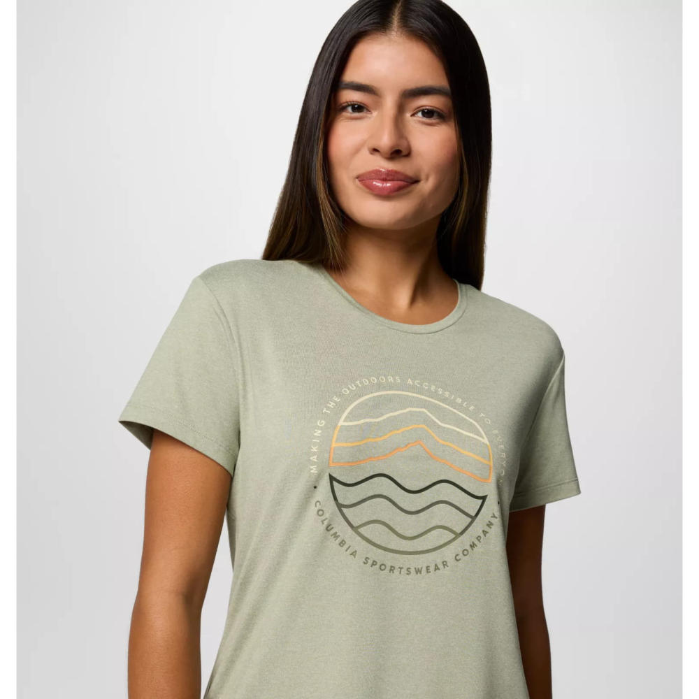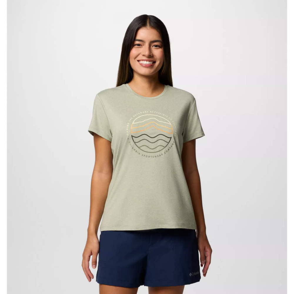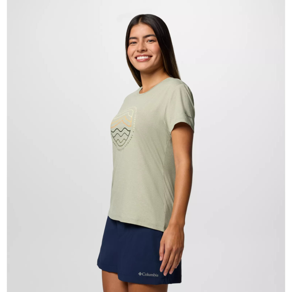Технологічна футболка Columbia Sloan Ridge сподобається дівчатам, які закохані в активний образ життя і віддають перевагу гарному місту красиві краєвиди за його межами.