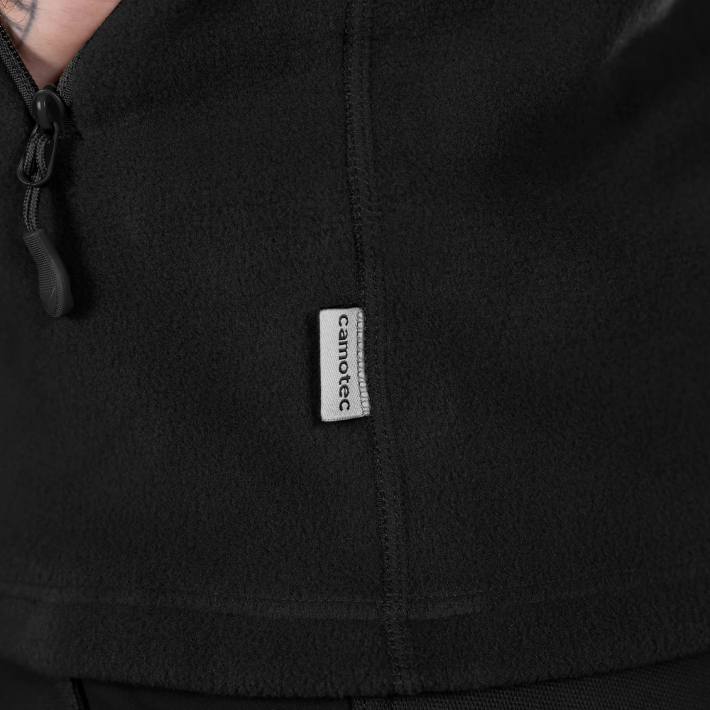 Кофта виготовлена з функціональної флісової тканини Himatec Air Basic (100 series) — легкої, пухкої та приємної на дотик. Завдяки структурі тканини утворюються повітряні прошарки, які ефективно утримують тепло, забезпечуючи високі термоізоляційні властивості при малій вазі. Матеріал добре дихає, відводить вологу, швидко сохне та має антибактеріальне просочення, яке запобігає утворенню та розповсюдженню бактерій. Еластичність тканини гарантує повну свободу рухів.