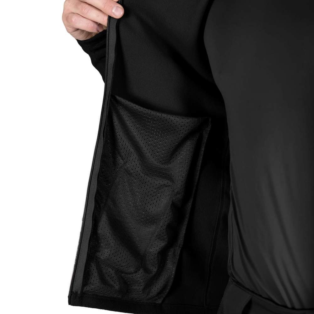 Модель оснащена двома зручними кишенями на блискавках із вентиляційними сітками всередині. Центральна блискавка має два бігунки для зручності регулювання, а всі застібки оснащені пулерами, що дозволяє комфортно користуватися ними навіть у рукавичках.