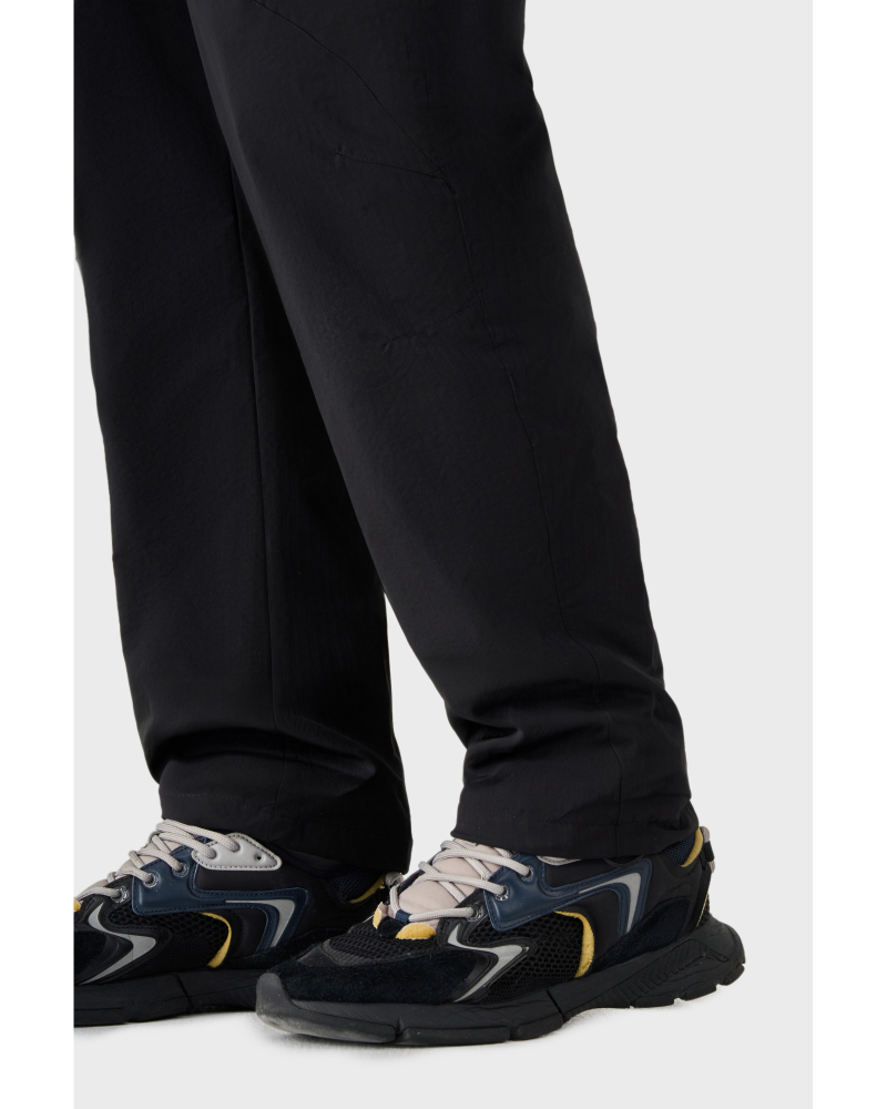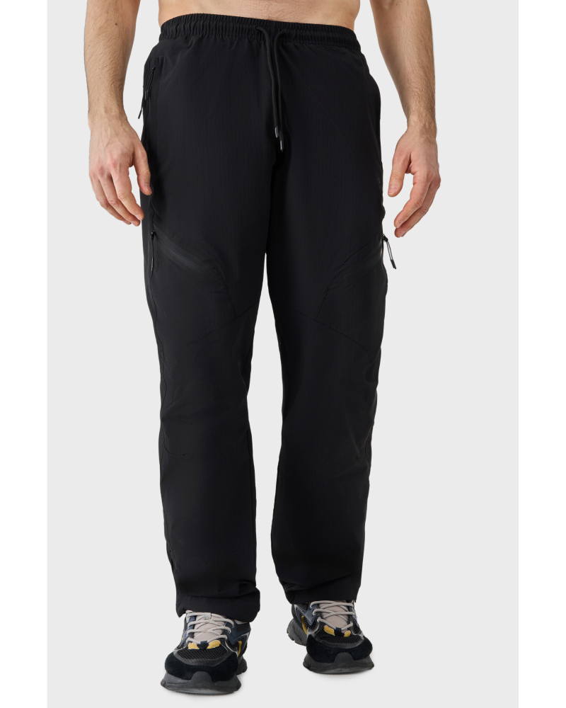 Штани виконані у стилі baggy з системою утягування по низу виробу, яка створює сучасний і охайний силует. Чотири кишені на блискавках забезпечують практичність у щоденному використанні, а система утягування в зоні талії дозволяє регулювати посадку відповідно до індивідуальних параметрів. Кишеня позаду виробу додає комфорту.