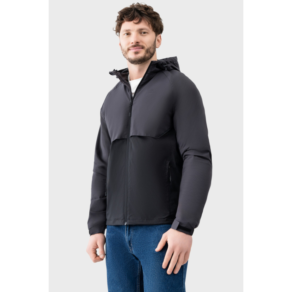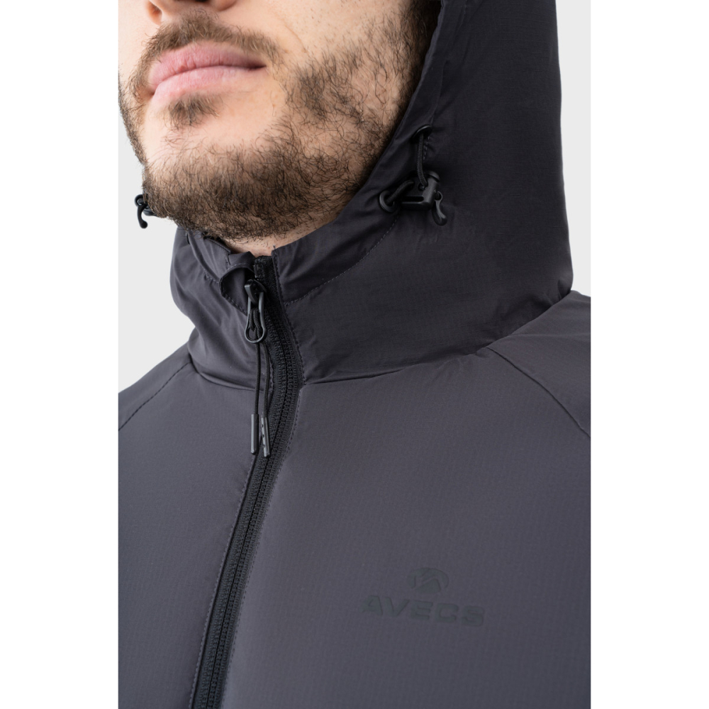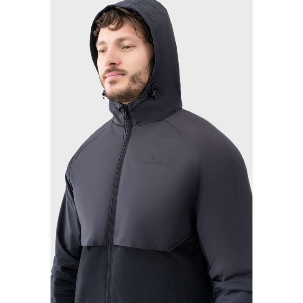 Вітровка AVECS у сірому кольорі поєднує технологічність, легкість і функціональність, забезпечуючи комфорт та захист у будь-яких погодних умовах і доповнюючи сучасний sport casual гардероб.