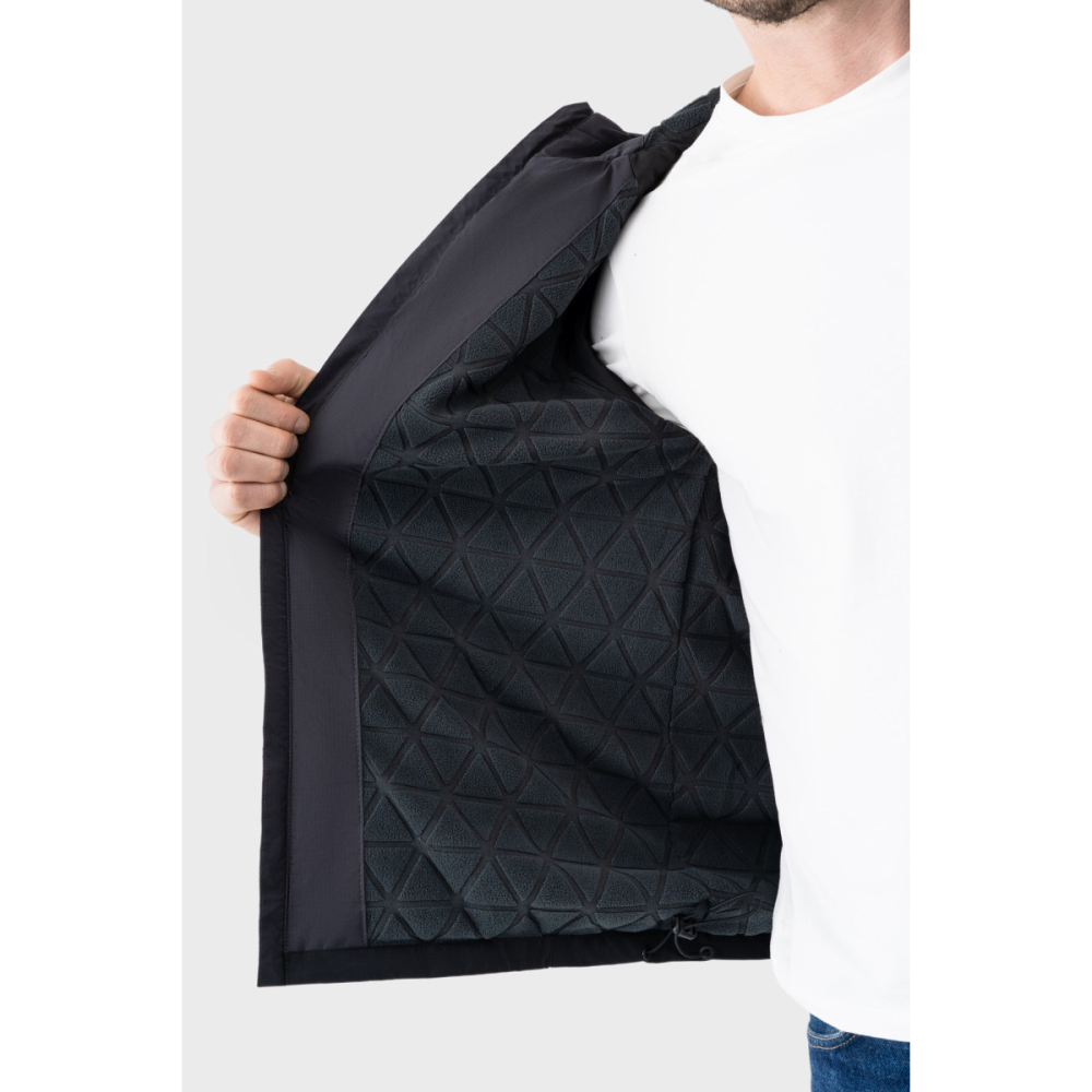 Вітровка виконана зі 100% поліестеру з використанням технології "Rip Stop" — міцної, довговічної та водночас легкої й гладкої тканини. Завдяки унікальній структурі плетіння волокон хрест-навхрест із додаванням посилювальних ниток матеріал має підвищену стійкість до розривів і механічних пошкоджень. Тканина не мнеться, не розтягується та не деформується, зберігаючи охайний вигляд навіть при активному використанні.