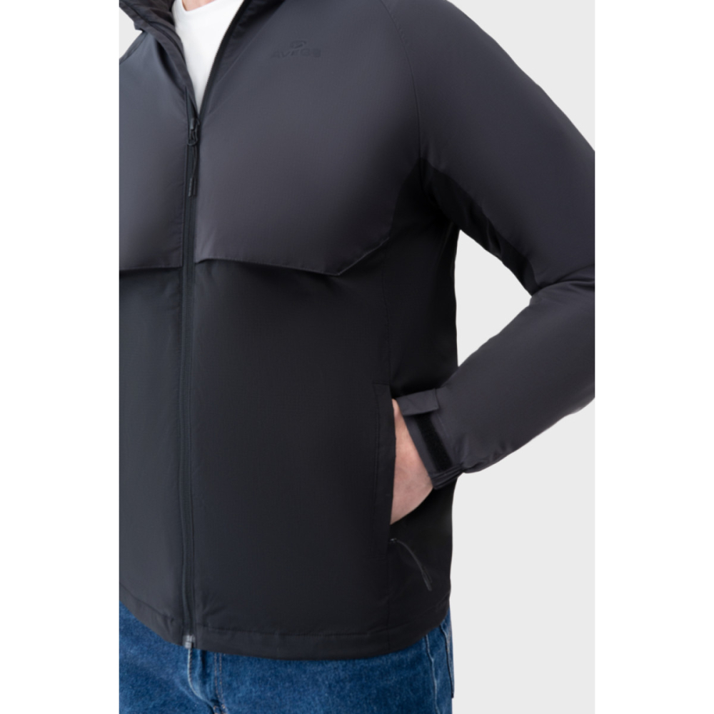 Сіра вітровка AVECS створена для надійного захисту у мінливих погодних умовах та комфортного щоденного носіння. Функціональний дизайн у поєднанні з технологічним матеріалом робить модель універсальним вибором для міського ритму, подорожей і активного способу життя.