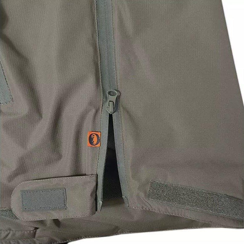 - Водонепроникні блискавки з боків від низу і під пахвами для додаткової вентиляції та доступу до спорядження.