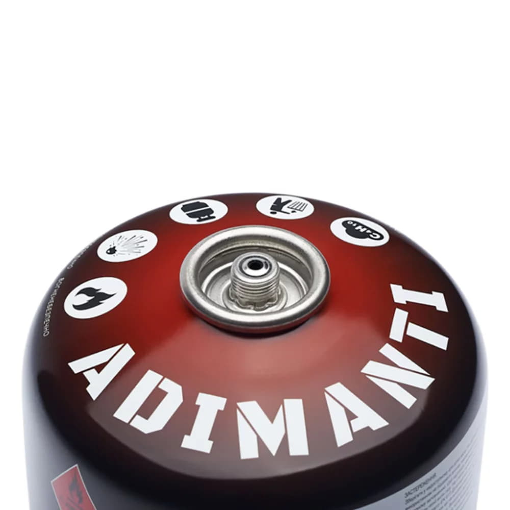 - Adimanti SBN-188 230 г - газовий балон з вагою 230 г і місткістю 460 мл, різьбовим клапаном SBN-188 і захисним ковпачком, відповідністю стандарту EN 417, сумісністю з більшістю різьбових портативних пальників/обігрівачів/плит - містить всесезонну газову суміш (збалансований вміст пропану/25%, бутану/39%, ізобутану/36%), яка за рахунок нижчих температур кипіння компонентів і стабільності горіння за звичайної погоди, забезпечує впевнене випаровування на холоді.