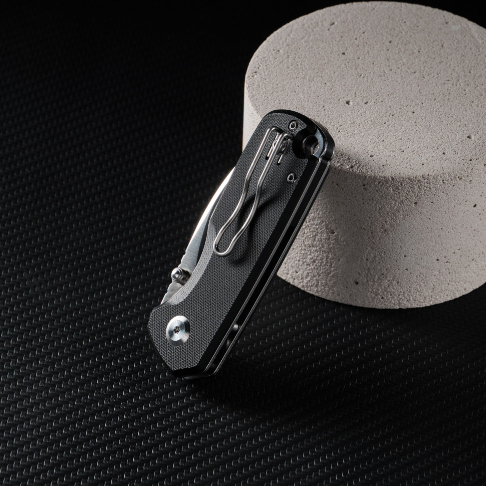 Ніж має складану конструкцію з мінімальною кількістю дрібних деталей, що не тільки знижує її вагу до 100 грамів, але й полегшує догляд за інструментом і продовжує його термін служби. У відкритому положенні довжина моделі становить 155 мм. З них 65 мм припадає на клинок і 90 мм — на руківʼя, роблячи транспортування конструкції простим і комфортним не тільки в сумці, а й в кишені одягу. Для цього також передбачена сталева кліпса, положення якої можна змінювати в залежності від індивідуальних уподобань та звичок.