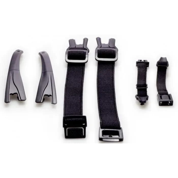 Обидва ремінці регулюються по довжині і забезпечені пластиковим фастексом (засувкою), завдяки чому, окуляри можна зняти/одягнути не знімаючи каску з голови; короткий ремінець призначений для кріплення до кінчиків дужок, довгий повністю замінює і дужки і короткий ремінець. Таким чином, ці окуляри-маска можуть бути закріплені на голові трьома способами: тільки ремінець / тільки дужки / дужки+ремішок .