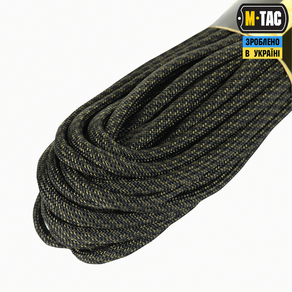 M-Tac паракорд 550 type III - це нейлоновий шнур, що складається з зовнішнього обплетення (велика кількість переплетених волокон) і сердечника (кілька нейлонових ниток, переплетених між собою), що забезпечують його міцність і невелику вагу.