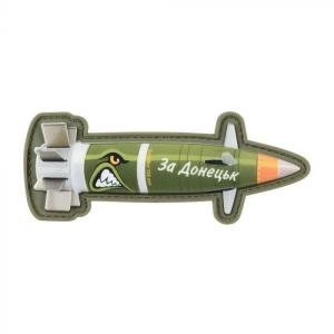 Стилізована у вигляді 155-мм високоточного керованого активно-реактивного снаряда (АРС) збільшеної дальності M982 Excalibur. Поверх нанесено мотивуючий напис: "За Донецьк", який висловлює бажання помститися ворогові за рідну землю. Нашивка виконана із міцного матеріалу (ПВХ) та оформлена у насичених кольорах. Витримує тривалу експлуатацію та не вицвітає на сонці. Нашивка виробляється українським брендом M-Tac та легко кріпиться до велкро-панелів одягу або екіпірування за допомогою липучки на звороті.