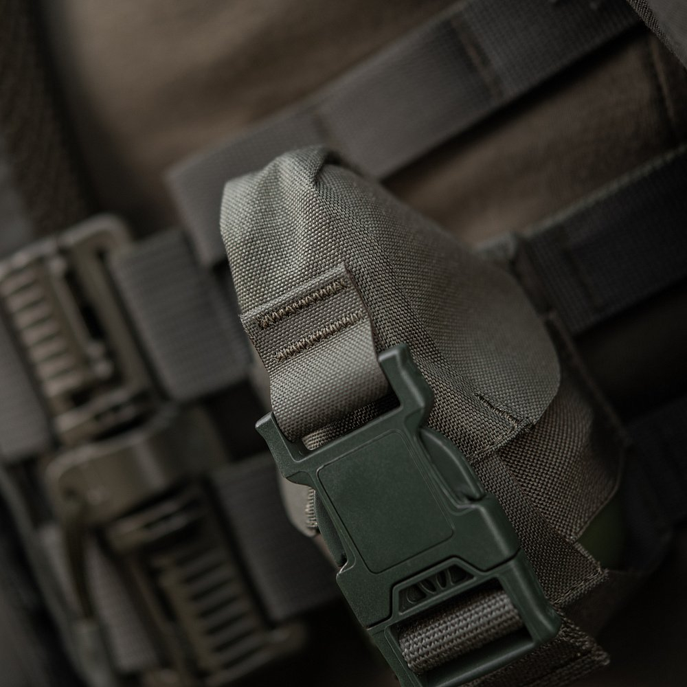 Підсумок має кришку-клапан у вигляді конуса для того, щоб уникнути втрати гранати. Також він закривається на фастекс від WJ – світового лідера з виробництва фурнітури. Еластичні резинки з обох боків забезпечують надійну фіксацію. Система кріплення MOLLE зроблена за технологією Laser Cut і дозволить Вам закріпити підсумок на всі сучасні модульні та розвантажувальні системи.