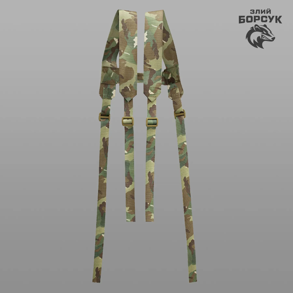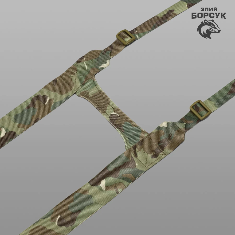 Плечові лямки виготовлені зі зносостійкої щільної стропи. Колір лямок співпадає з кольором стропи тактичного пояса.