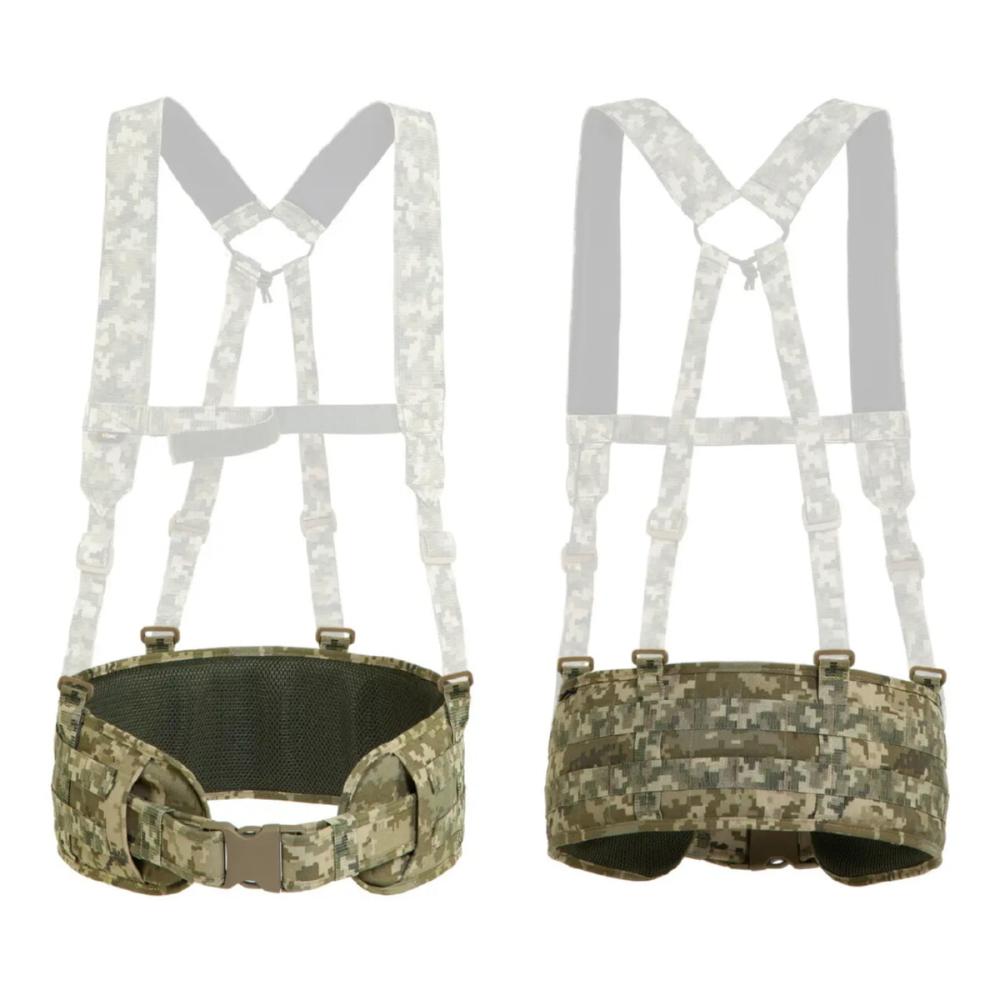 - Додаткові чотири пряжки дають можливість прикріпити плечові лямки, які не йдуть у комплекті, і використовувати пояс як розвантажувальну ремінно-плечову систему.