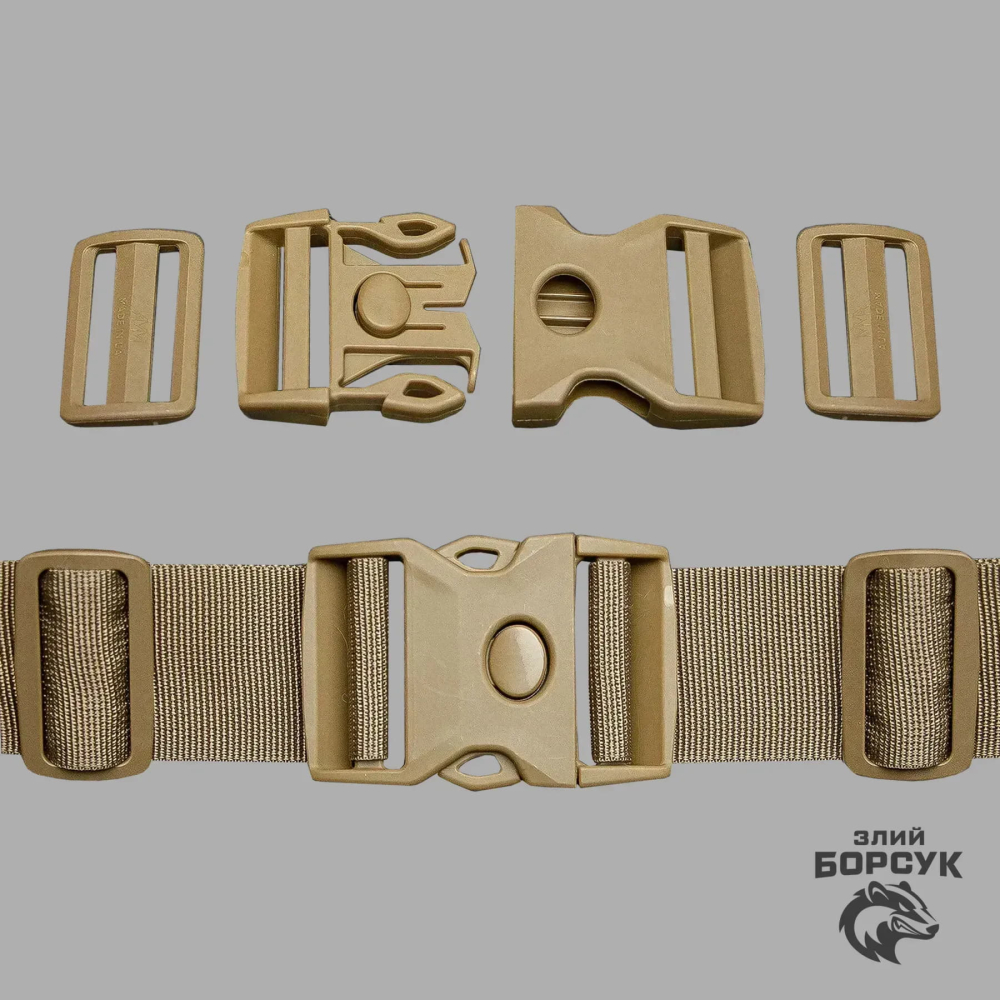 Фастекс АММ койот 50 мм. (1 шт.): Високоякісна застібка, що забезпечує швидке та надійне з'єднання елементів спорядження. Фастекс виготовлений з міцних матеріалів, що гарантують довговічність і стійкість до зносу. Його механізм дозволяє легко розстібати та застібати компоненти, забезпечуючи високу ефективність у будь-яких умовах.