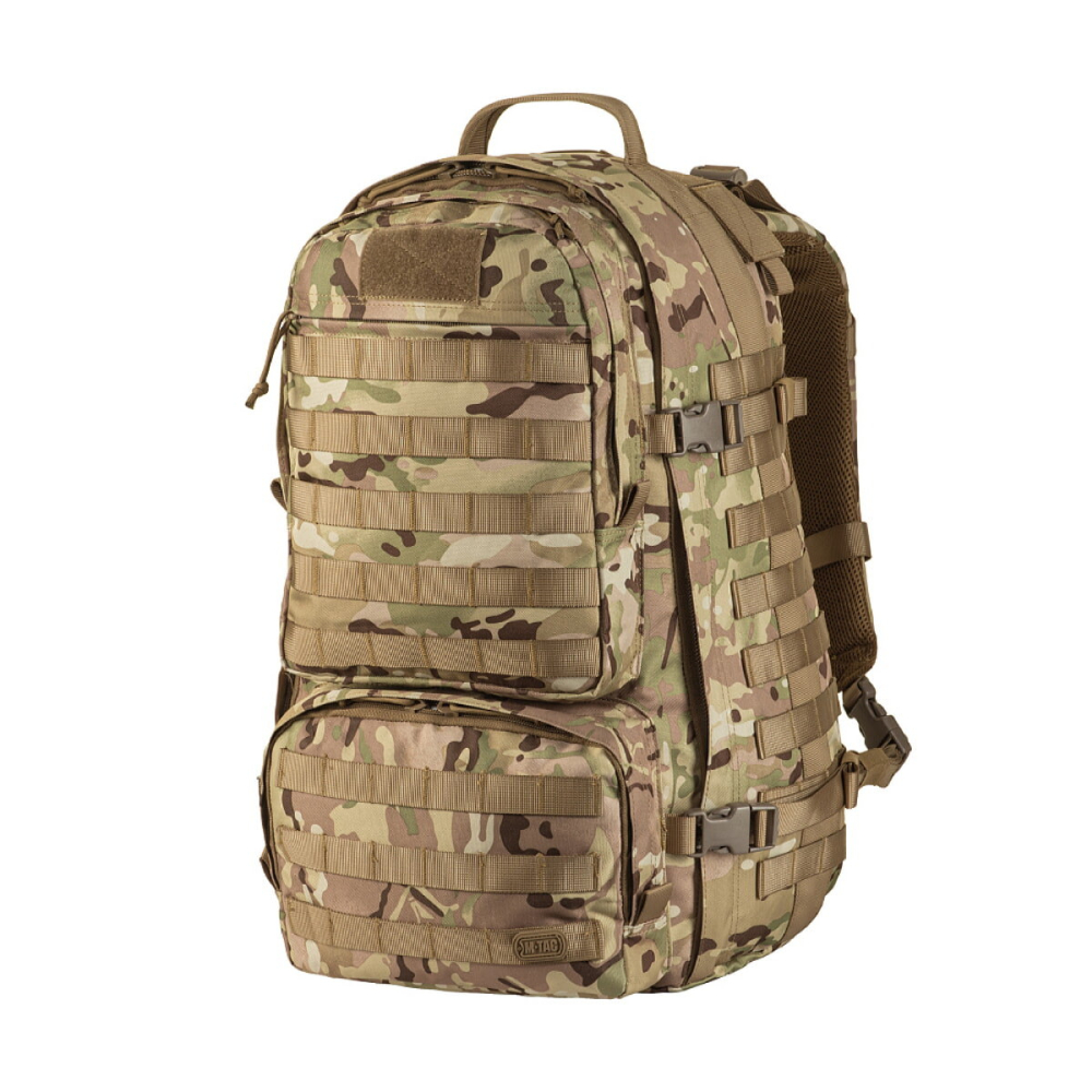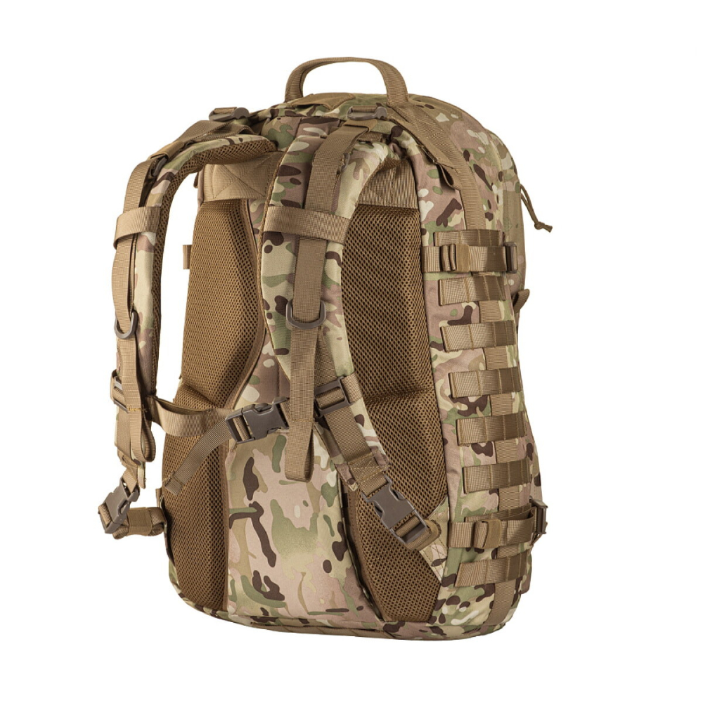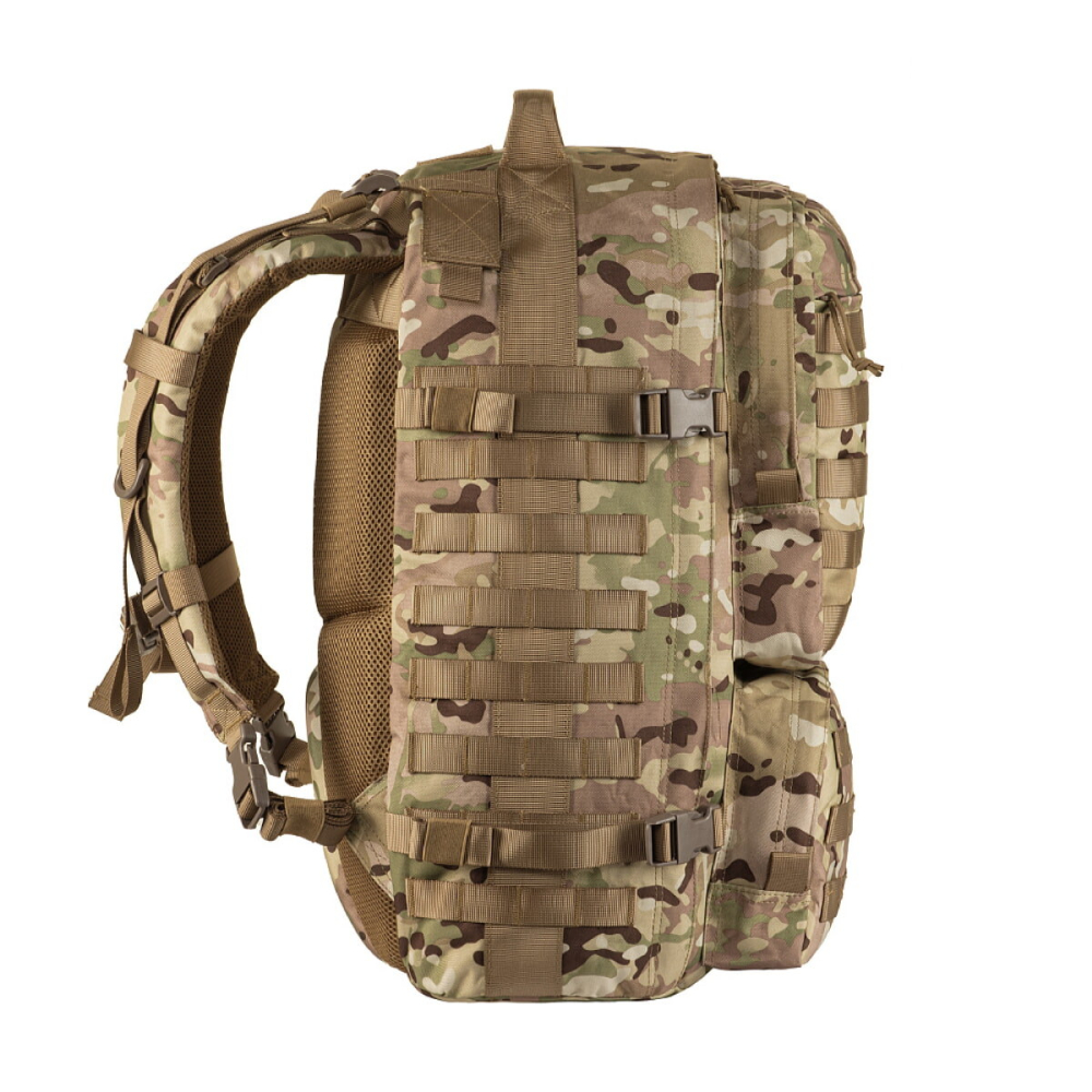 Рюкзак відкривається за принципом валізи, що зручно при укладанні речей. Ретельно продумані відділення призначені для розміщення та транспортування всього необхідного. Спереду та з боків рюкзак оснащений системою MOLLE, що дозволить за необхідності збільшити його об'єм додатковими підсумками. М'які плечові лямки рівномірно розподіляють вагу та зменшують навантаження на спину. Бічні стяжки стискають об'єм рюкзака, роблячи його компактнішим. Спинка із демпферної сітки призначена для додаткової вентиляції.