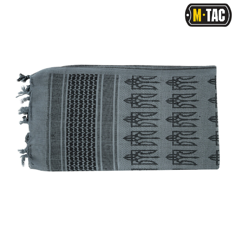 Тактичний пустельний M-Tac шарф шемаг із зображенням тризуба, який є державним Гербом Украіни. Шарф типу "шемаг" (більш відомий на території країн СНД як "арафатка") призначений для захисту області голови і шиї від впливу піску та сонця, а також для захисту від вітру при холодних погодних умовах. Даний шарф використовується багатьма арміями світу.