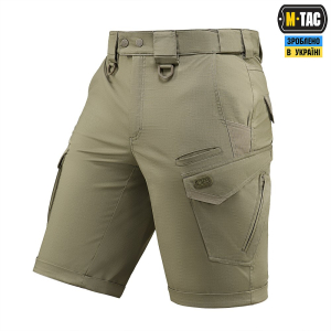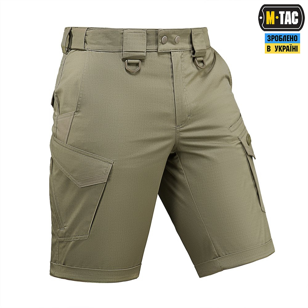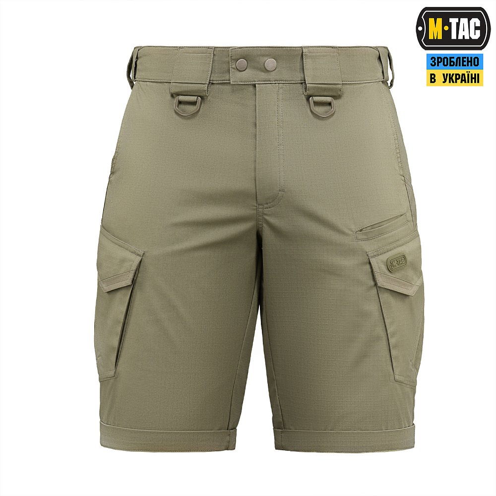 M-Tac шорти Aggressor Gen.II Flex ви можете використовувати, як для тренувань, стрільбища, роботи, так і для ділової подорожі або прогулянки. Вітчизняний бренд M-Tac намагається вносити інноваційні технології на ринок. Пошито шорти з легкої, однотонної тканини рипстоп, з водо- і брудозахисним просоченням Teflon. Склад: бавовна, поліестер і спандекс. Тканина з вмістом поліестеру і бавовни приємна до тіла, добре тримає колір і відрізняється високою міцністю. Основним завданням дизайнерів шорт було зберегти комфорт рухів, і з цим завданням вони впоралися на всі сто відсотків - шорти створюють відчуття легкості, не обмежують рухи і виглядають стильно і солідно. Зручні широкі кишені з посиленими вставками. Шорти розраховані на носіння з ременем шириною до 5.5 сантиметрів. Спереду на кріпленнях для ременя нашиті пряжки для кріплення чого завгодно (за допомогою карабінів). Якісна фурнітура від компанії YKK.