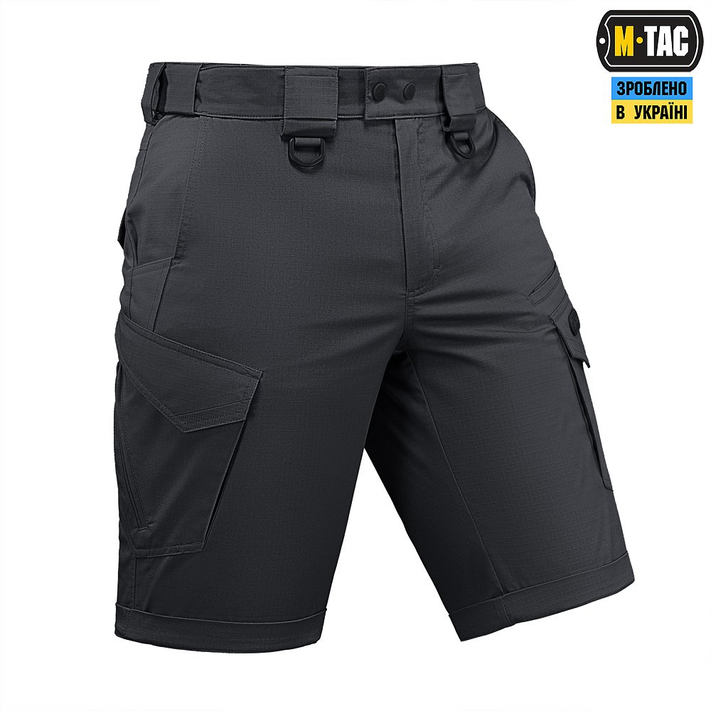 M-Tac шорти Aggressor Gen.II Flex ви можете використовувати, як для тренувань, стрільбища, роботи, так і для ділової подорожі або прогулянки. Вітчизняний бренд M-Tac намагається вносити інноваційні технології на ринок. Пошито шорти з легкої, однотонної тканини рипстоп, з водо- і брудозахисним просоченням Teflon. Склад: бавовна, поліестер і спандекс. Тканина з вмістом поліестеру і бавовни приємна до тіла, добре тримає колір і відрізняється високою міцністю. Основним завданням дизайнерів шорт було зберегти комфорт рухів, і з цим завданням вони впоралися на всі сто відсотків - шорти створюють відчуття легкості, не обмежують рухи і виглядають стильно і солідно. Зручні широкі кишені з посиленими вставками. Шорти розраховані на носіння з ременем шириною до 5.5 сантиметрів. Спереду на кріпленнях для ременя нашиті пряжки для кріплення чого завгодно (за допомогою карабінів). Якісна фурнітура від компанії YKK.