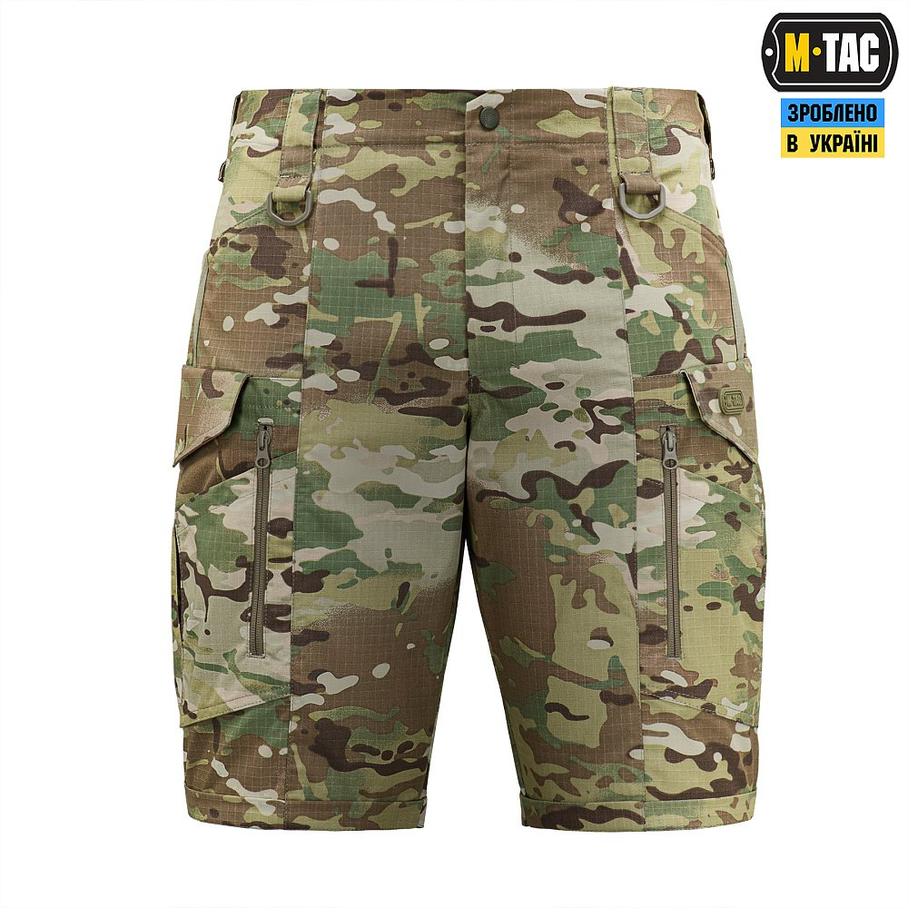 M-Tac шорти Conquistador Rip-Stop оснащені великою кількістю кишень, як утилітарних, так і спеціальних: всього їх вісім. Застібаються на блискавку, внутрішній ґудзик та кнопку (виробництва YKK).