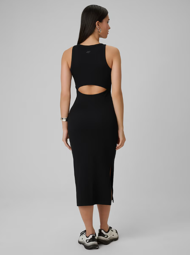 Без рукавів – це проста та комфортна конструкція. Облягаючий крій slim акцентує форми, а максі довжина робить сукню придатною для повсякденного носіння. Виріз на спині додає оригінальності та порушує класичну форму.