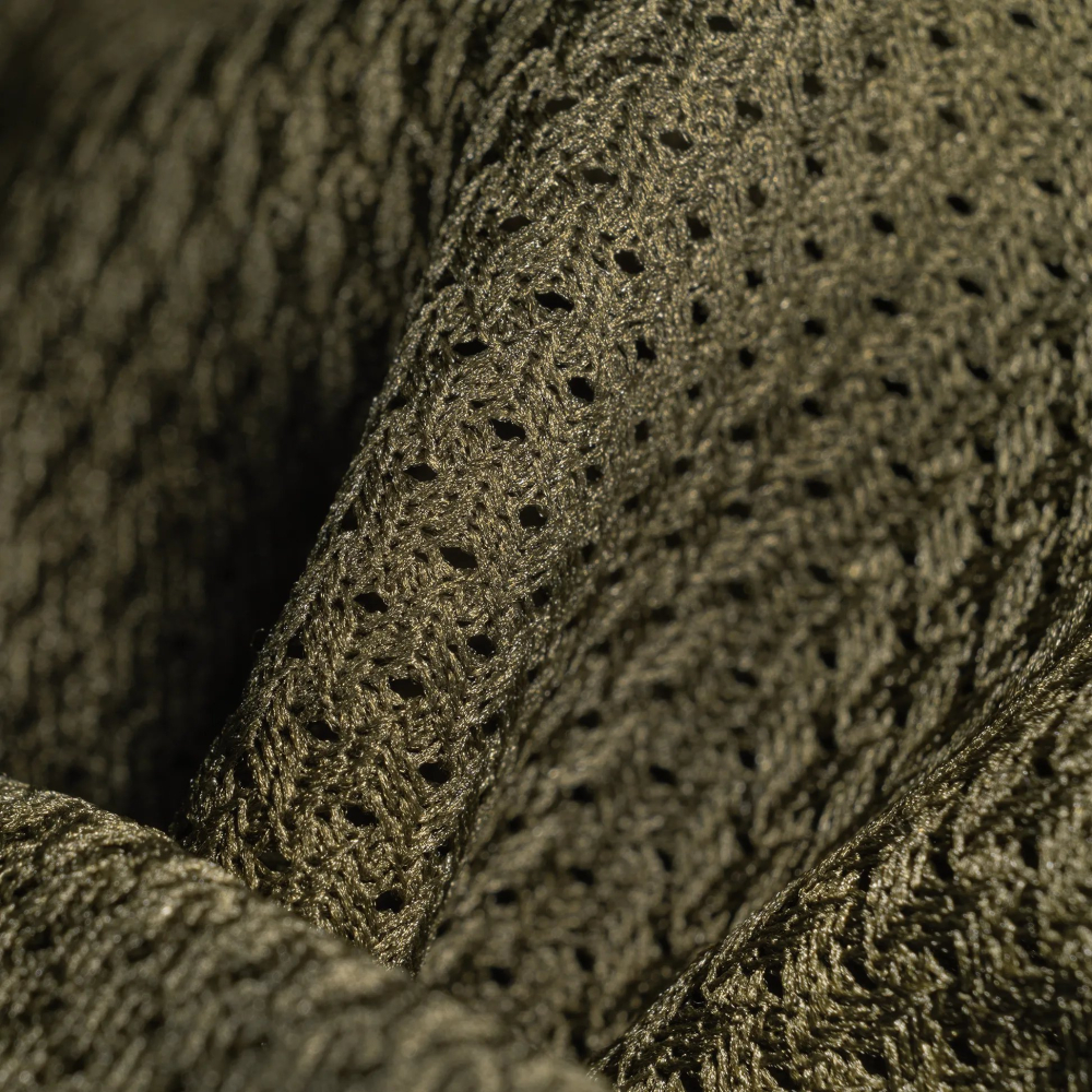 Куртка виготовлена з еластичної, дихаючої тканини, що поєднує Nylon (90%) і Spandex (10%). Нейлонові волокна мають малу вагу та не затримують вологу, завдяки чому тканина швидко висихає.