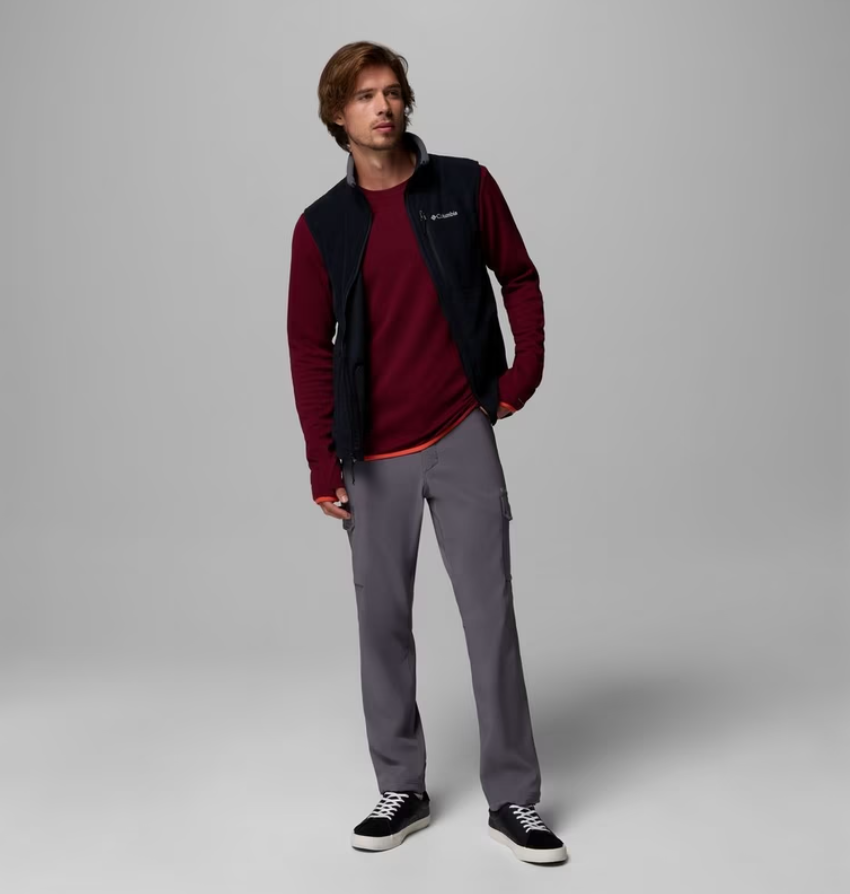 Одягніть цей затишний флісовий жилет, ідеальний для прохолодних ранків на стежці, виготовлений з надзвичайно м'якої флісової тканини, яка зігріває вас до глибини душі.