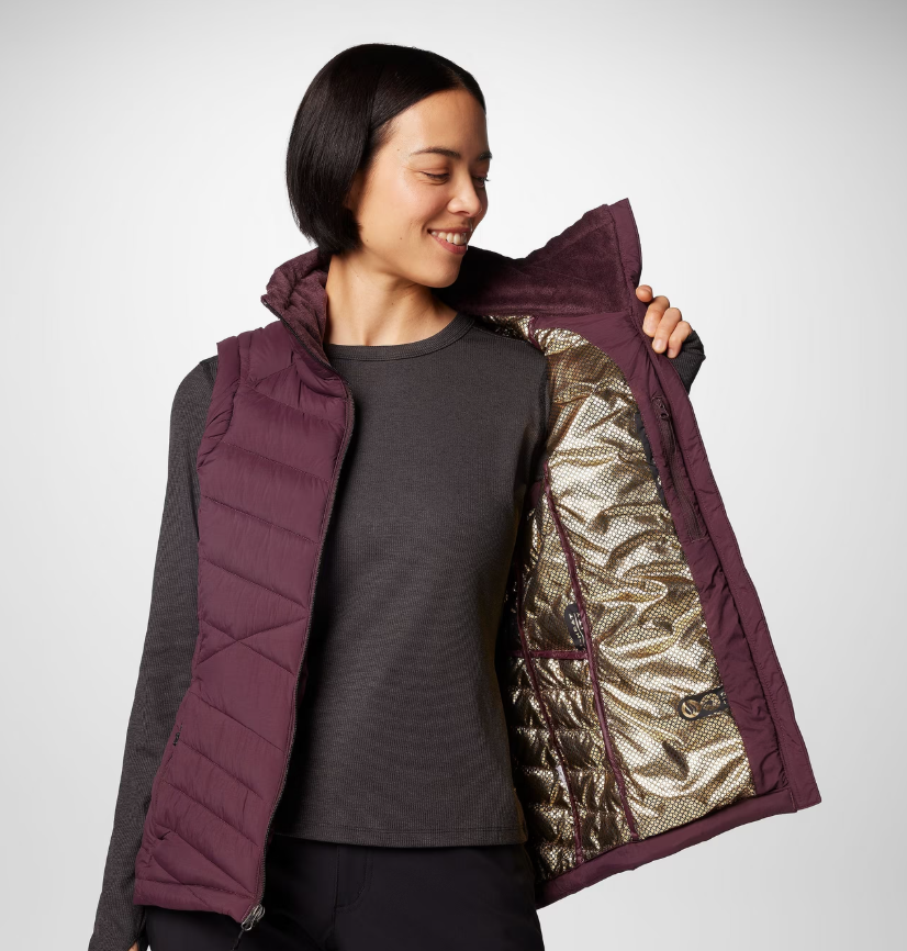 Розкішний жилет із нашою термовідбивною золотою підкладкою, легким утеплювачем з переробленого синтетичного матеріалу та гладкою тканиною, що блокує легкий дощ, тож ви можете залишатися в теплі та комфорті всю зиму.