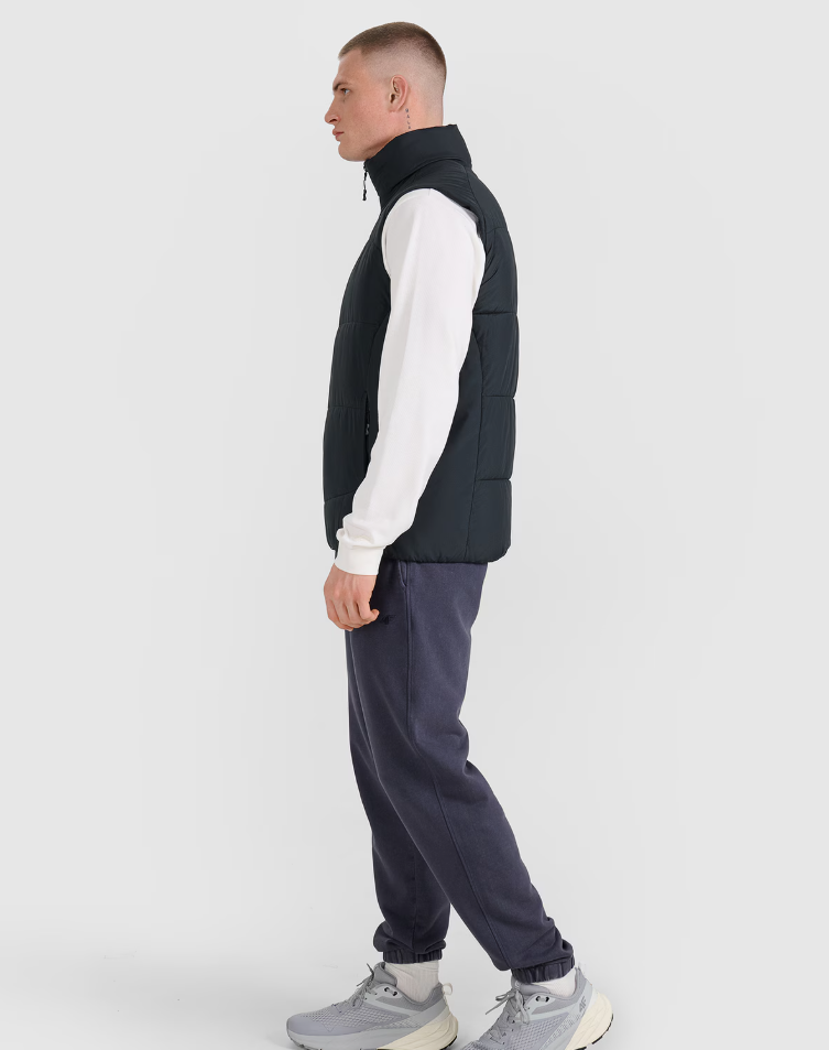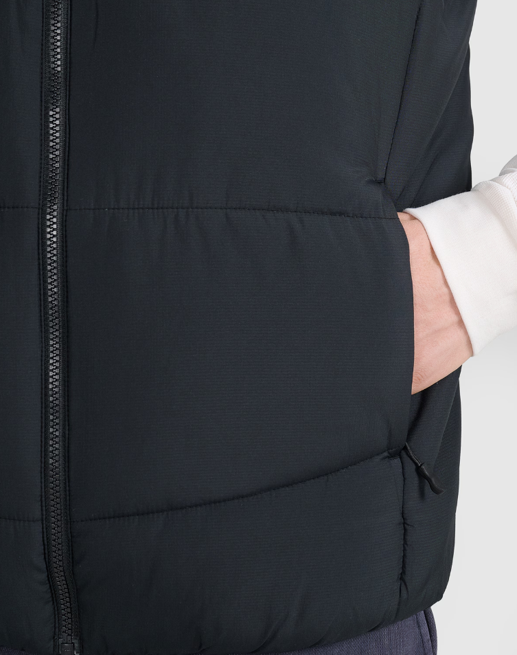Чоловіча пухова безрукавка з легкою конструкцією, завдяки якій її можна носити як у повсякденному житті, так і під час спортивних активностей у тепліші дні перехідного періоду.